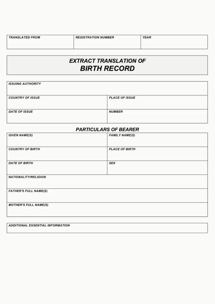 Template translations are used to prove evidence for all official certified purposes, including for citizenship or visa applications, etc. Only the relevant information is translated, following official templates.
